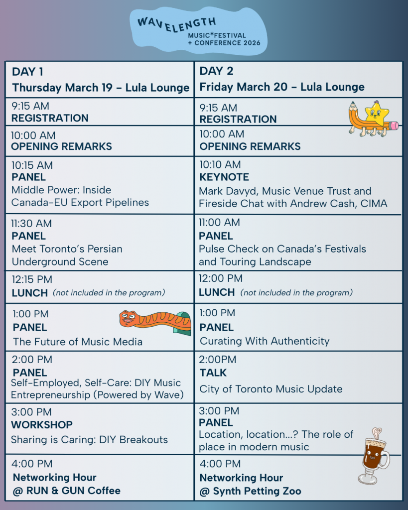 Que faut-il vraiment pour devenir entrepreneur dans le secteur musical ? Ce panel explore la réalité du métier de travailleur indépendant ou de propriétaire de petite entreprise, et propose des pistes de réflexion sur la littératie financière et le bien-être. Présenté en partenariat avec Wave, une plateforme canadienne de services financiers numériques.