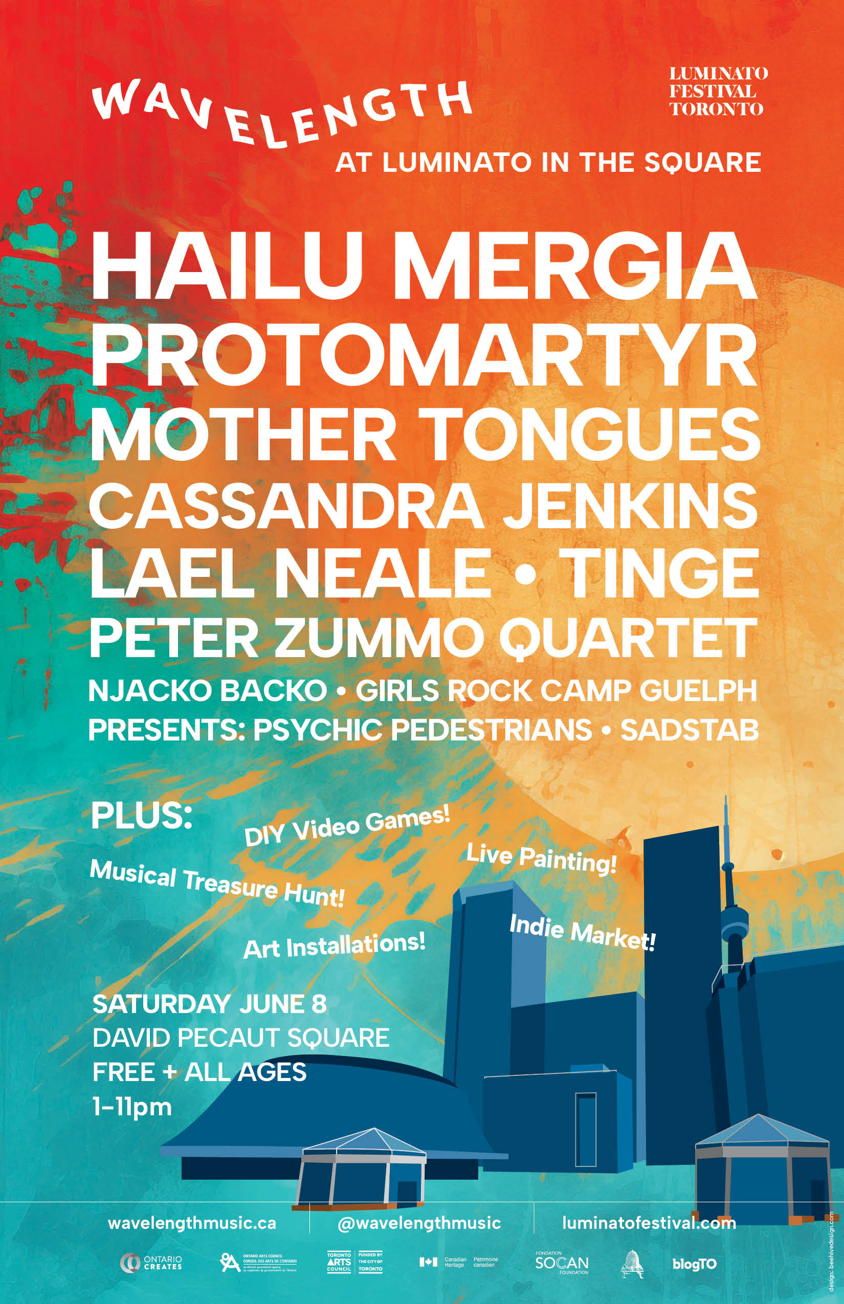 Summer sees TWO free outdoor shows on the Wavelength calendar, the first being a special curated collaboration with Luminato Festival as part of their Luminato in the Square series at David Pecaut Square (WL 878, June 8). Wavelength brings some of sparkly magic to the downtown core with its trademark roster of visual artists, including Stephanie Avery, Roxanne Ignatius, Kizmet and Julia YH, as well as new collaborations with the Indigenous Music Summit, Girls Rock Camp Guelph, and DIY video game crew Dirty Rectangles. The mainstage lineup includes rising US indie stars Cassandra Jenkins and Lael Neale alongside Toronto psych-rock icons Mother Tongues. A freak rainstorm doesn’t keep the crowds away from Detroit post-punk heroes Protomartyr — and only adds to their dystopian dissonance — and people keep dancing in the puddles for Ethio-jazz pioneer Hailu Mergia’s keyboard jams.