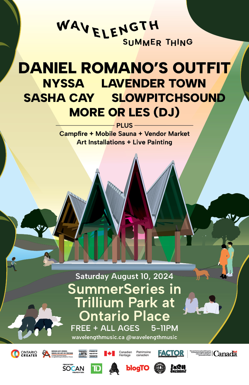 In August, the Wavelength Summer Thing returns to the waterfront for its second year at Trillium Park (WL 880, Aug. 10) — condensed from three days to a massive, one-day party. Headlined by Ontario punk idols Daniel Romano’s Outfit — who bring out a hefty volume of denim and leather among the crowd of thousands — the rest of the patently diverse lineup includes glam-rock chanteuse Nyssa (on the eve of a UK move), jazz-fusion gamer crew Lavender Town, Montreal indie folk-rocker Sasha Cay, and experimental turntablist SlowPitchSound with guest dancer, Libydo. Wavelength’s visual arts offerings are enhanced by the addition of Mobile Sweat, a mobile sauna and art experience by Public Sweat, the folks behind Art Spin. The art is both escapist and timely: Julia YH creates a live painting of a musical mermaid, Stephanie Avery contributes seating repurposed from condo-ad waste, and Kizmet’s installation contemplates the Palestinian genocide. And the Summer Thing levels up its vendor offerings with an Indie Market and tasty new food vendors including Gebeta Ethiopian. After just two years at the city’s best lakeside park, it already feels like a tradition.