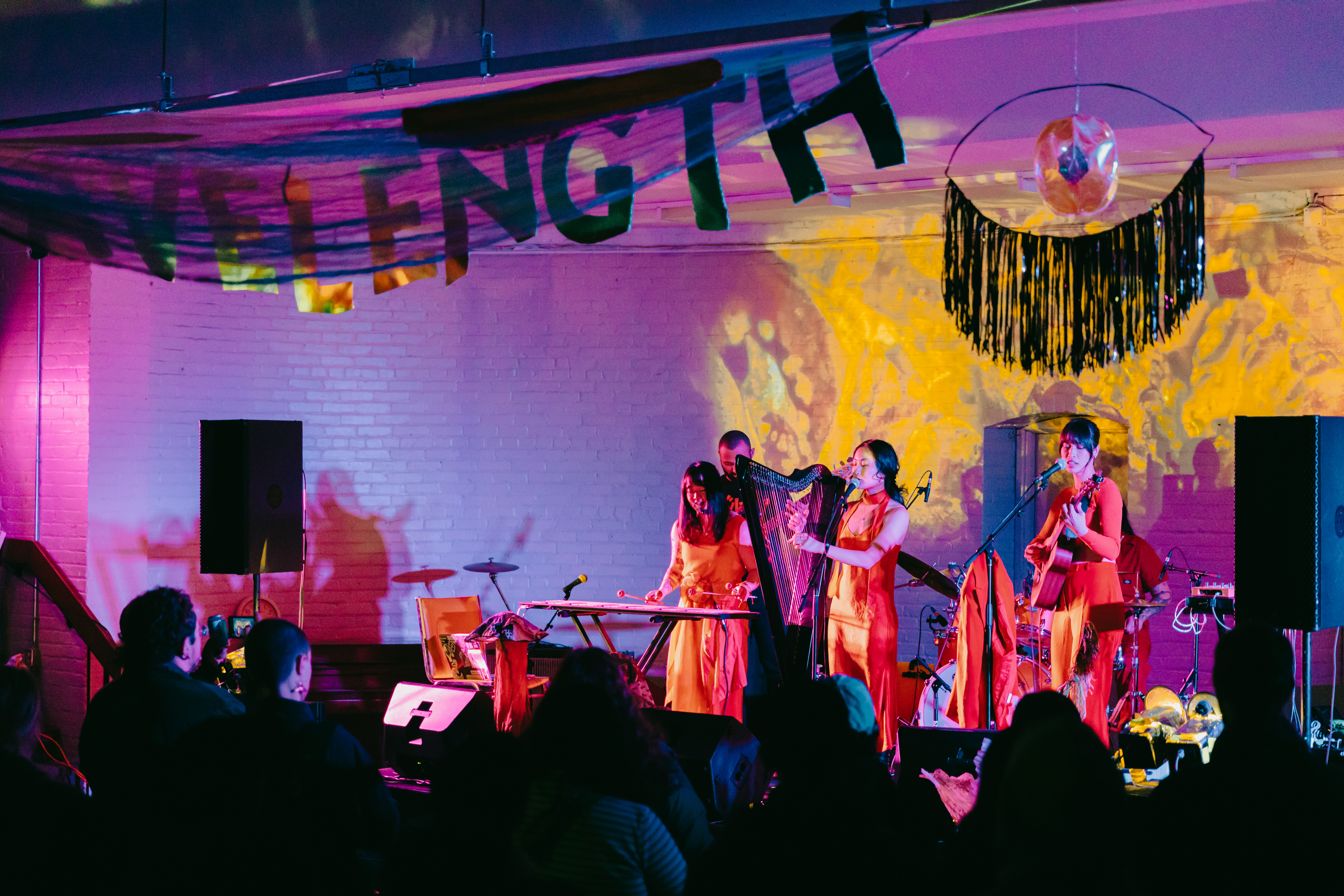Wavelength begins the lead-up to our 25th anniversary year with a slightly scaled-back but still ambitious edition of our Winter Festival (WL 872-874, Feb. 29-March 2). Inspired by the warm reception to 2023’s Reimagining Music Venues study — one of our milestone research & development projects — the fest kicks off with a panel discussion entitled “Meet Toronto’s New Music Spaces,” with the aim of generating optimism about the grassroots music venue ecosystem by highlighting new and innovate spaces that had opened or reopened in recent years. Building on that idea, the festival lineup goes “East to West” across the city over three nights, from Beams and Just Prince exploring contemporary angles on folk music at the new Hugh’s Room Live on Broadview, to a hip-hop/R&B-oriented youth lineup at U of T’s Hart House with visuals by OCAD students, to an epic two-floor finale at St. Anne’s Parish Hall. That Saturday night at the Parish includes a memorable performance with pieces for horns and (yes) cellphones by Charles Spearin as well as a rip-roaring set by Montreal guests Ribbon Skirt (fka Love Language). And it hints at things to come —  as that fall, Wavelength begins putting down roots by acquiring our own stage, sound & lighting system and hosting our fall programming at St. Anne’s.